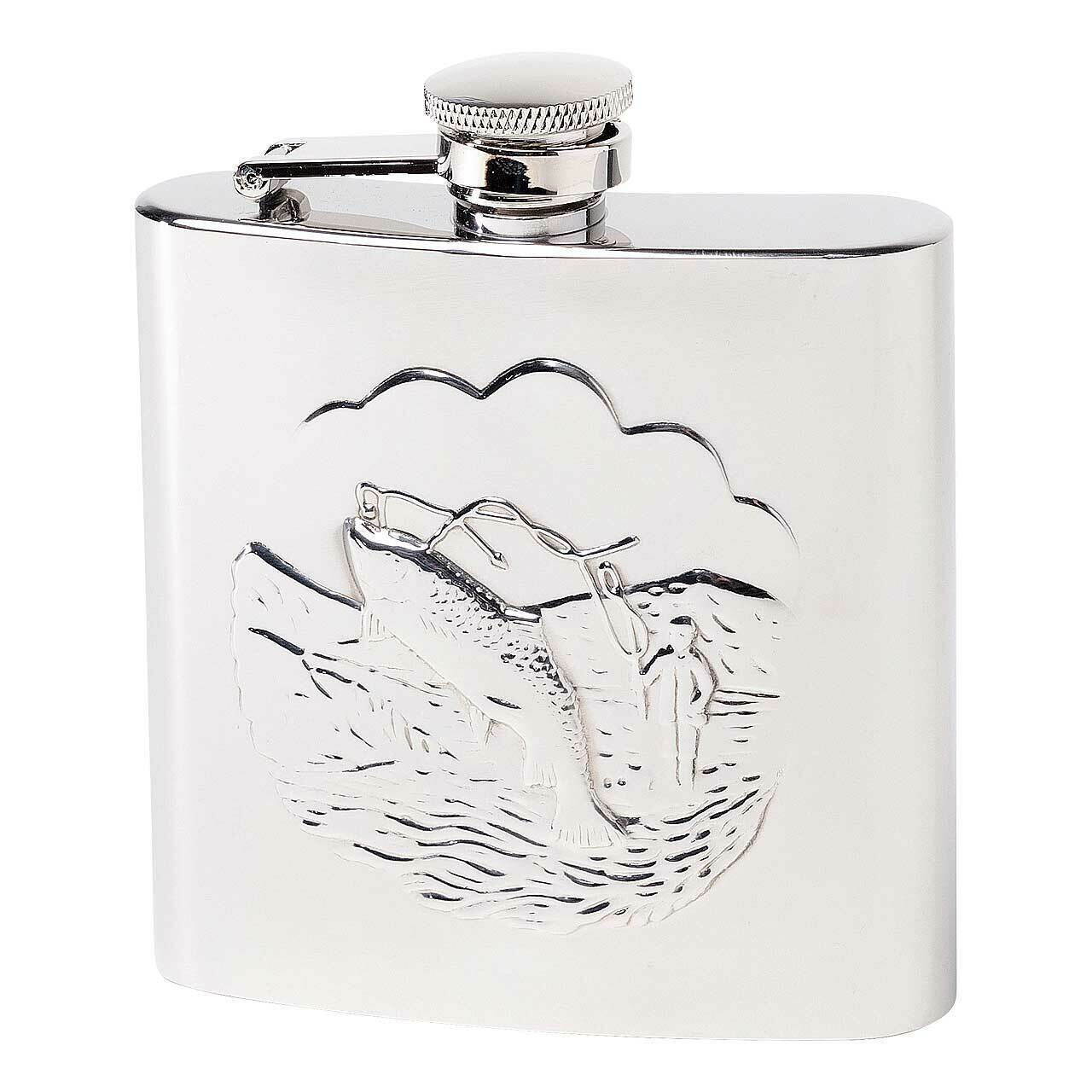 Vrecková fľaška/ploskačka Herbertz 545114 Edelstahl Fisch 177ml vyrobená z nerezovej ocele, so zrkadlovo lešteným povrchom s rybárskym motívom na prednej strane. Vybavená skrutkovacím uzáverom. Objem: 177 mlVýška: 10,8 cm prečítať celé