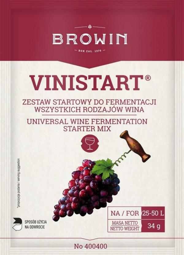 Kombinace vzácných vinných kvasinek se speciálně vybranými živinami, minerálními solemi a vitamíny.Vinistart se doporučuje zejména pro vína vyrobená z angreštů, hrušek, meruněk, jahod, obilovin, hlohu, jablek, divoké růže, bílých a černých hroznů, rebarbory, rozinek, třešní, malin, švestek,...