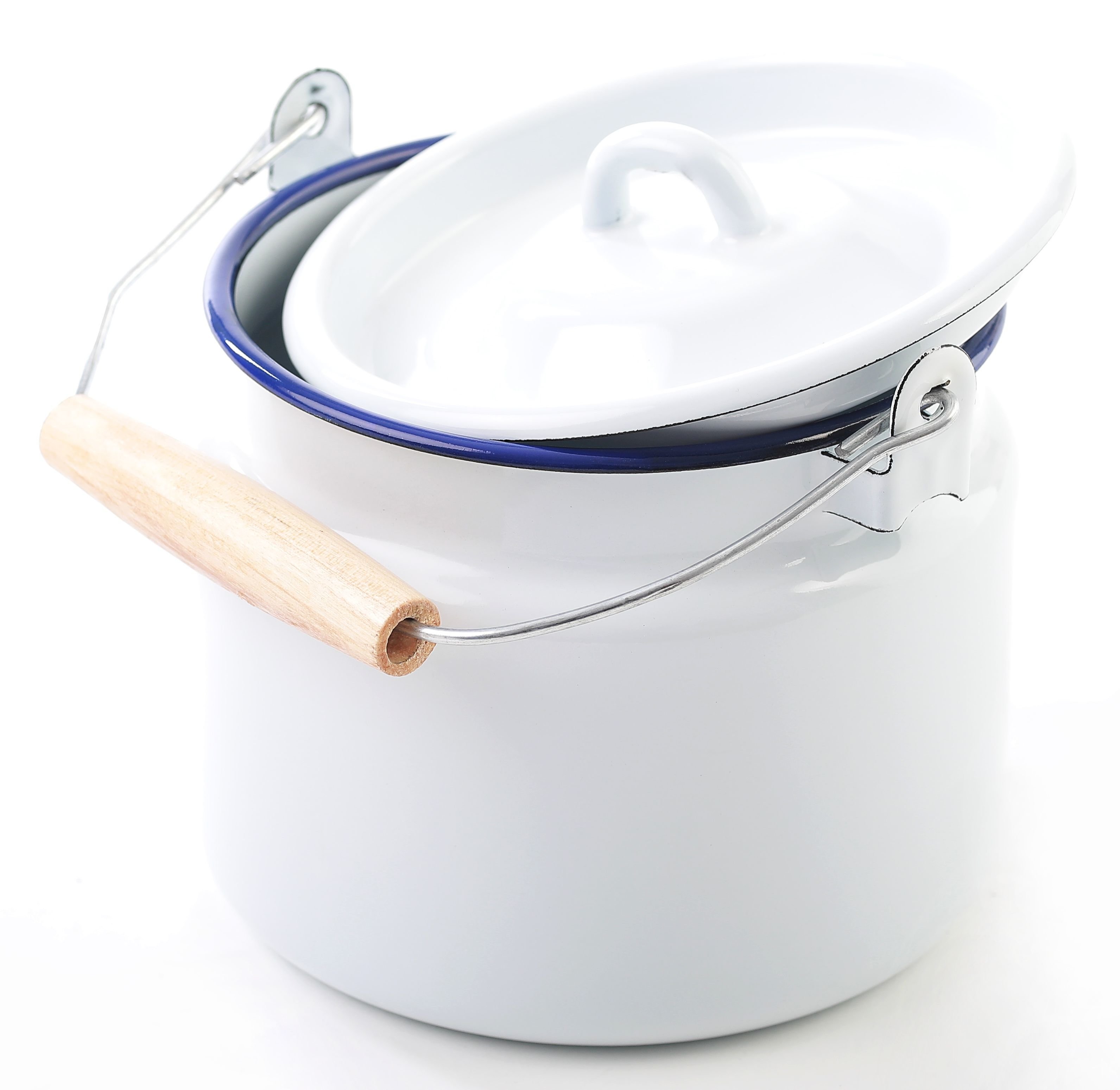 Kvalitní smaltovaná bandaska v retro stylu. Nádoba má klasickou bílou barvu a je doplněnou modrým lemem tak, jak ho mnozí z nás pamatují ze svého dětství. Je výborným pomocníkem například při sběru lesních plodů nebo při přepravě čerstvého mléka. Má objem 2 l, takže je ideální pro menší množství přepravovaných pochoutek.