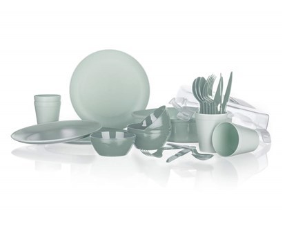 Táto praktická kempingová sada obsahuje všetko potrebné pre pohodlné stolovanie až pre 4 osoby. Súčasťou sú plastové taniere s priemerom 23,5 cm, poháre na nápoje s objemom 250 ml, ďalej plastové príborové súpravy vrátane lyžíc, vidličiek a nožov vhodných na rýchle použitie i opakované používanie. Pre zvýšenie komfortu sú v balení aj plastové misky s objemom 250 ml, ktoré sa hodia napríklad na polievky, prílohy alebo ovocie. Celá sada je navrhnutá tak, aby bola ľahká, ľahko umývateľná a bezpečne uskladniteľná v priloženej dóze.