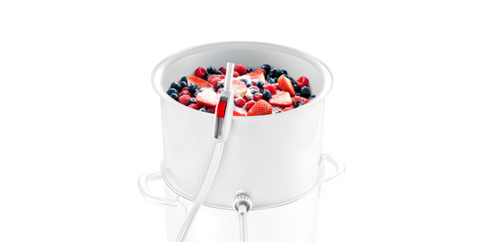 Vynikající pro přípravu domácích ovocných a zeleninových sirupů, přírodních šťáv, želé a džemů. Vhodné pro všechny kastroly a hrnce TESCOMA s poklicí ¤ 24 cm a ostatní nádobí stejné velikosti. Vyrobeno z prvotřídního odolného plastu, pružná silikonová hadička pro stáčení do lahví je opatřena uzávěrem. Návod k použití je součástí balení. 3 roky záruka.