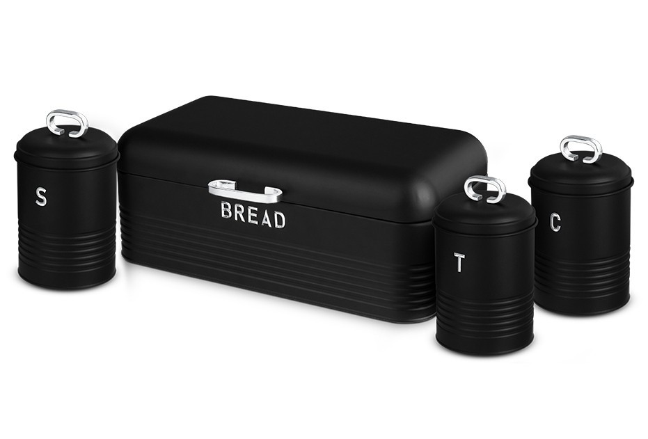 - sada 3 kusů designových dóz na potraviny a chlebník z kolekce Black Silver