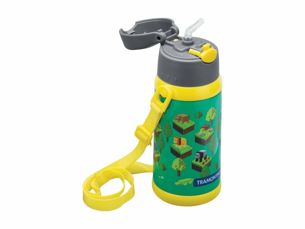 Detská termo fľaša so slamkou Tramontina 61647/057 Le Petit s objemom 500 ml, v zelenej farbe s atraktívnym detským dizajnom.