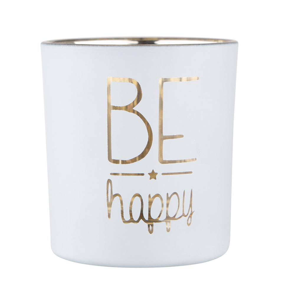 ŚKLENĚNÝ SVÍČNÍK BÍLÝ S ZLATOU VNITŘNOSTÍ 7X8CM DEKORACE BE HAPPY
