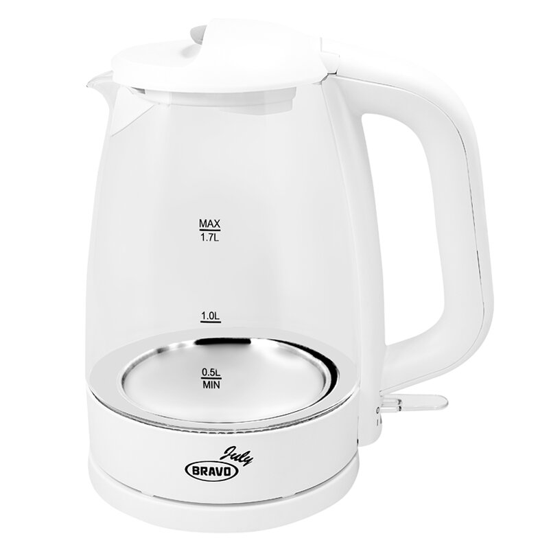 Rychlovarná skleněná konvice Bravo B-4626 JulyLehká, praktická, skleněná konvice s objemem 1,7 l. Vidíte, kolik v ní máte vody, dobře se s ní nalévá voda. Tato rychlovarná konvice se vyznačuje praktičností a objemem 1,7L. Je Světelná kontrolka provozu ukazuje současný stav konvice. LED podsvícené...