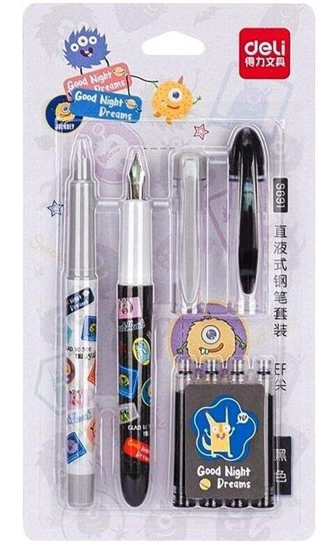 Pióra wieczne czarne z granat, nabojami 2szt DELI