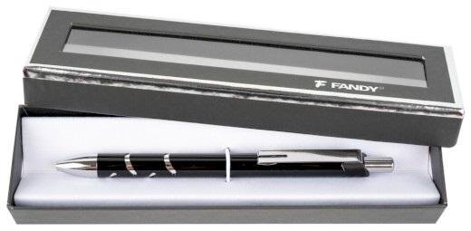 metalowy długopis automatyczny ze srebrną błyszczącą końcówką i klipem, wymienny wkład F-411, niebieski kolor tuszu, grubość linii 0,7 mm, pudełko upominkowe prečítať celé