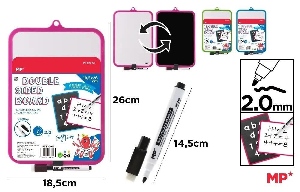 Tablica biała dwustronna z markerem 18,5x26cm MIX