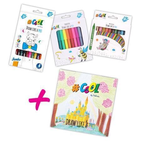 Balíček obsahuje: Barevné pastelky , 12 barev, jumbo, trojhranné + Voskovky, kulaté, 12 různých barev + Fixy, sada, 12 různých barev, 2 mm + DÁREK: Omalovánka, COOL BY VICTORIA