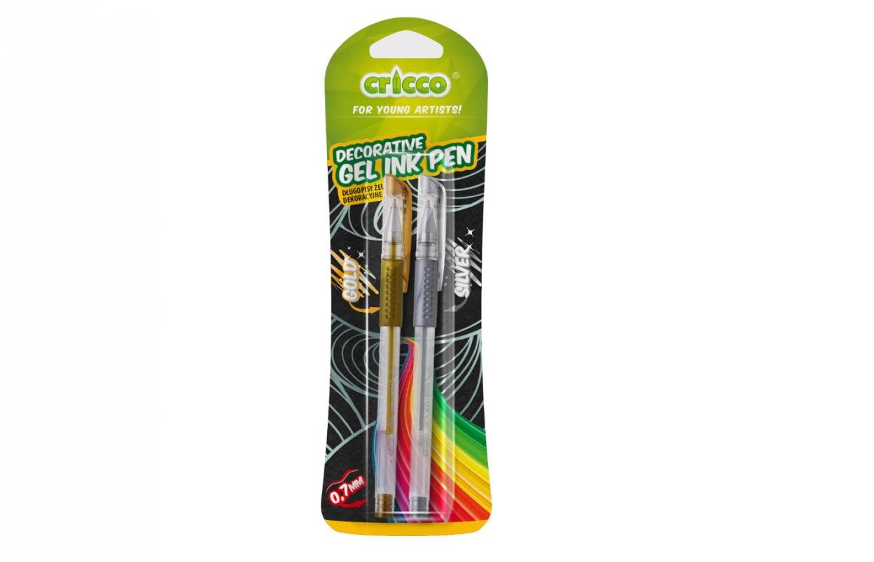 Idealne rozwiązanie do dekorowania kartek okolicznościowych, listów i zaproszeń, ozdabiania zeszytów i pamiętników Znakomite efekty zarówno na jasnym, jak i ciemnym papierze. Gumowy uchwyt zapobiegający ślizganiu się palców i poprawiający komfort pisania. Długość linii pisania około 300-350m. Grubość linii: 0,7mm. Blister: 2 sztuki (srebrny i złoty).
