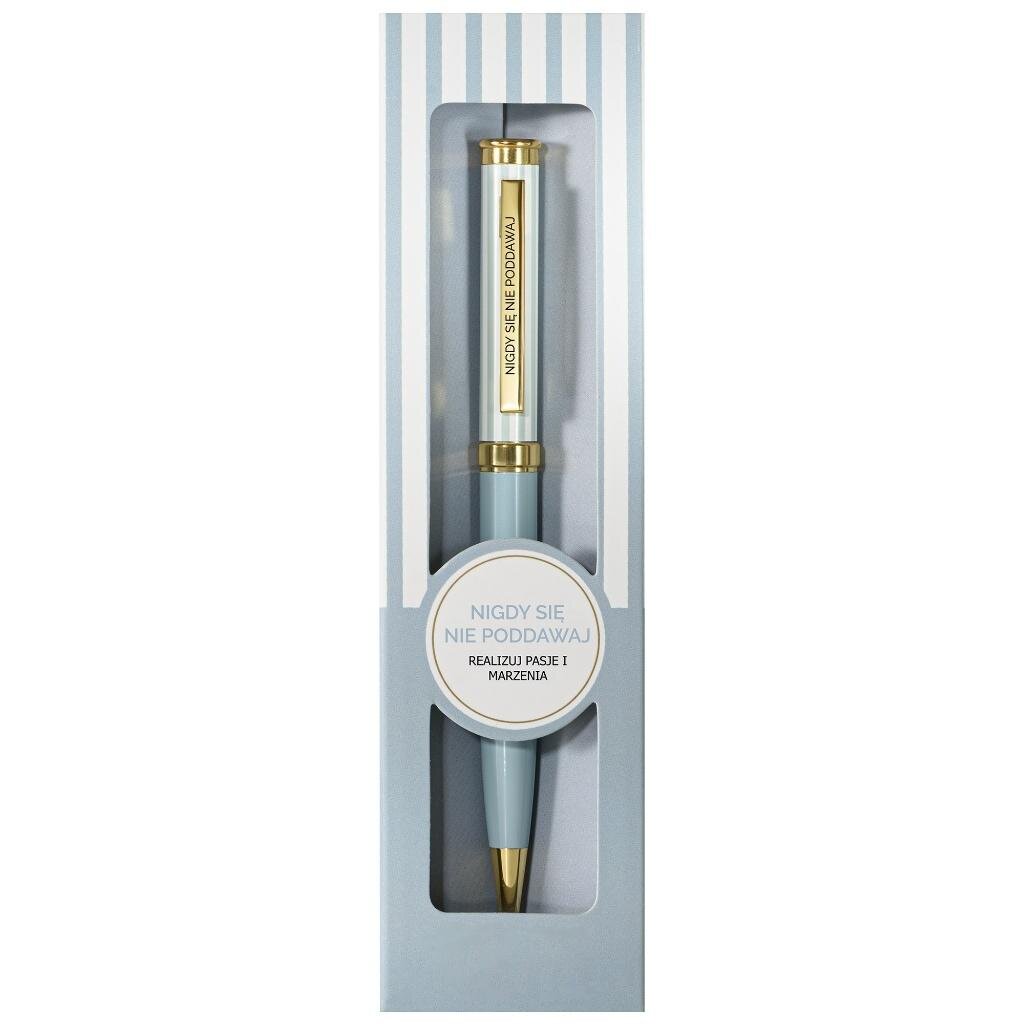 Elegancki długopis prezentowy w pudełku. Długopis zachwyca oryginalnym wzorem i nowoczesnym designem. Wyposażony w niebieski, wymienny wkład, będzie praktycznym i stylowym dodatkiem. To idealny prezent dla bliskiej Ci osoby! SPECYFIKACJA DŁUGOPISU: Personalizowany grawer (widoczny na zdjęciu); ciekawy wzór i design; pastelowa kolorystyka; materiał - metal; eleganckie opakowanie; wymienny wkład w kolorze niebieskim.