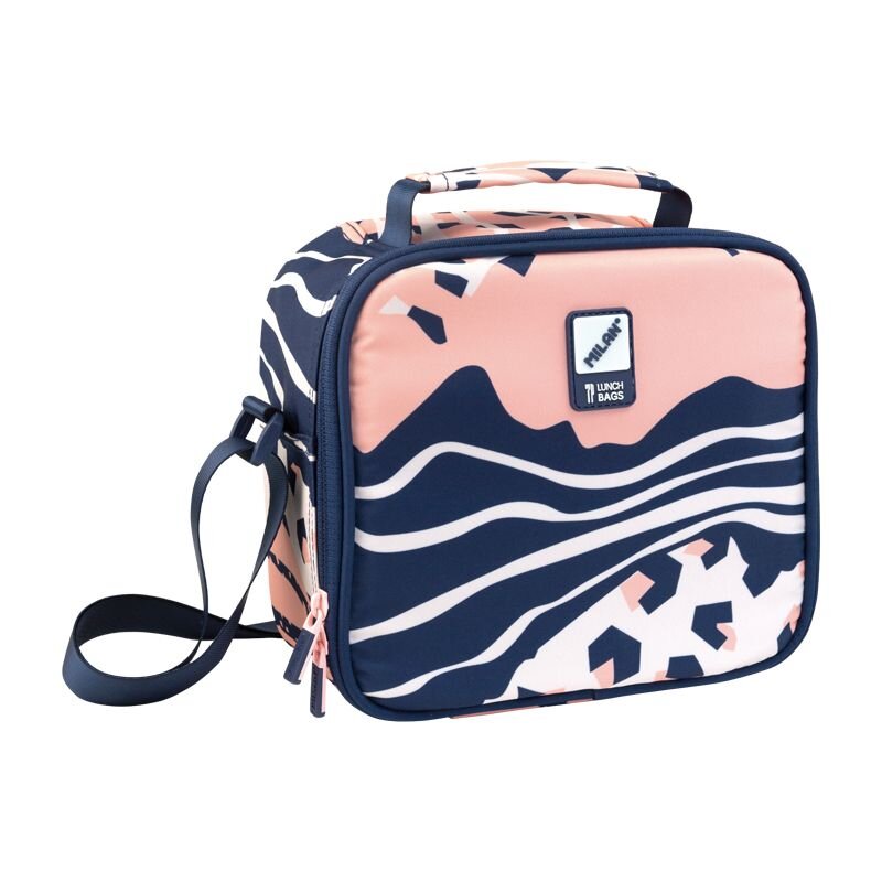 • izotermická taška na jídlo MILAN se třemi boxy • speciální řada MELT PINK růžová a tmavě modrá barva • obsahuje 3 krabičky na oběd: obdélníkovou s bílým víkem, čtvercovou s bílým víkem a kulatou modrou se šroubovacím víkem • tepelně izolovaný interiér (studený / horký) pro lepší konzervaci...