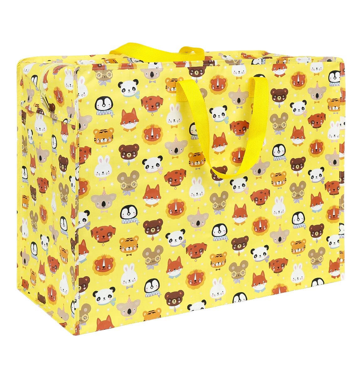 Velká úložná taška s potiskem zvířátek je ideální pro skladování oblečení, přikrývek a hraček, ale lze ji také použít na pláž nebo do bazénu. Taška je vyrobena z recyklovaného plastu a zavírá se na zip. Tašku lze snadno složit, takže pokud jí zrovna nevyužíváte, nezabírá příliš místa.