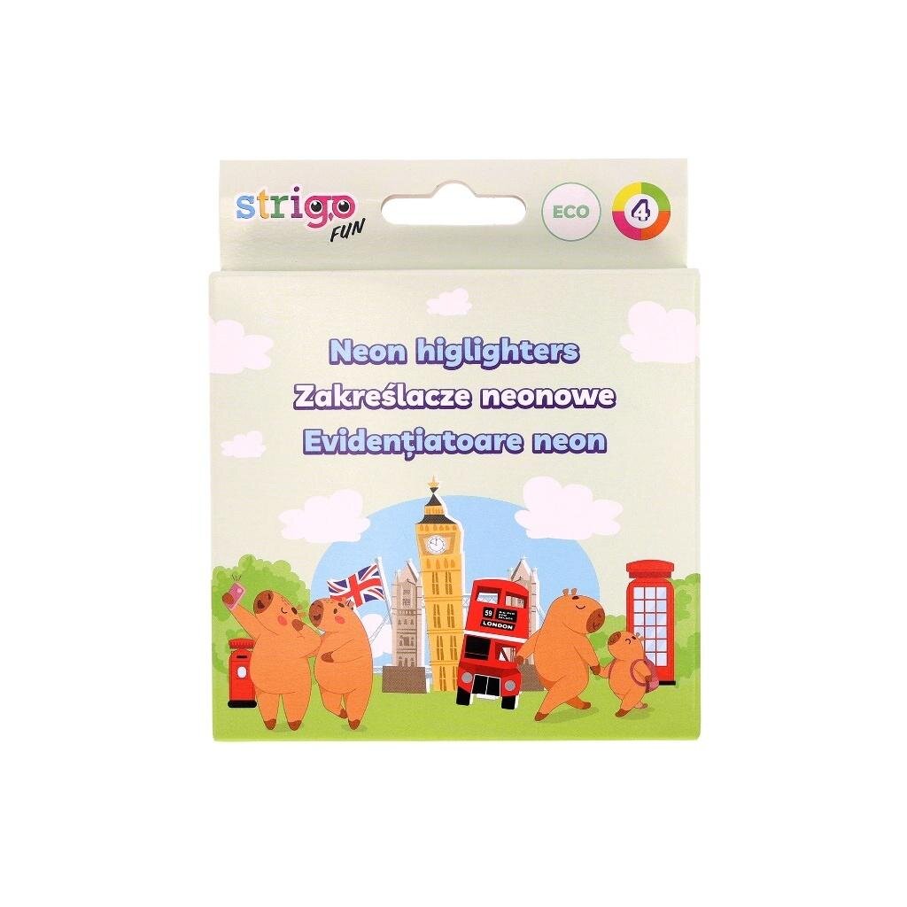 Eko zakreślacz Strigo z limitowanej serii Kapibara w neonowych kolorach, wykonany w 60% z materiałów pochodzących z recyklingu to doskonały wybór do podkreślania i zakreślania.