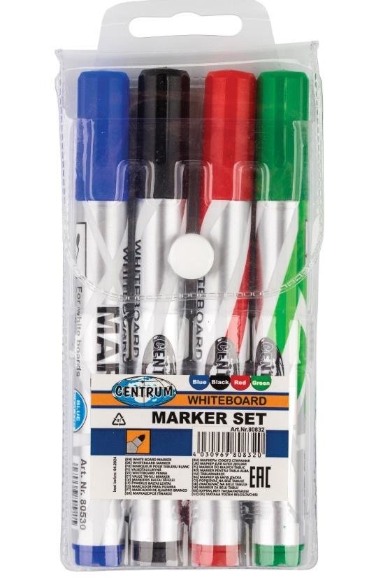 Zestaw 4 markerów(czarny,niebieski,czerwony, zielony) do pisania po tablicy. -szybkoschnący, ścieralny tusz -okrągła końcówka prečítať celé