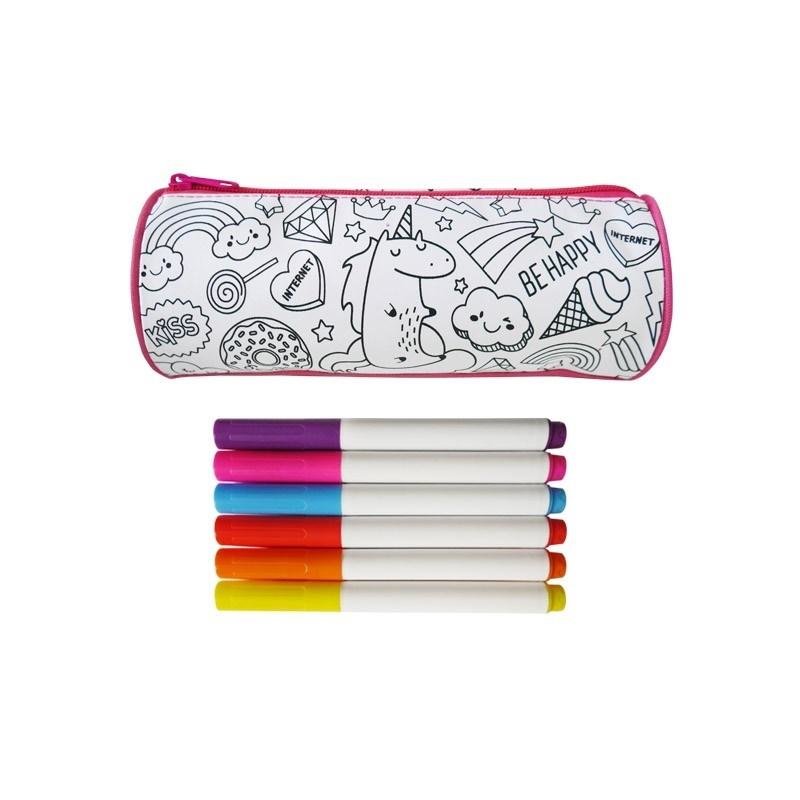 Zestaw kreatywny piórnik do kolorowania z nadrukiem jednorożca. W zestawie również flamastry. Produkt rozwija zdolności manualne i kreatywność dziecka. Każde dziecko może w indywidualny sposób ozdobić własny. prečítať celé