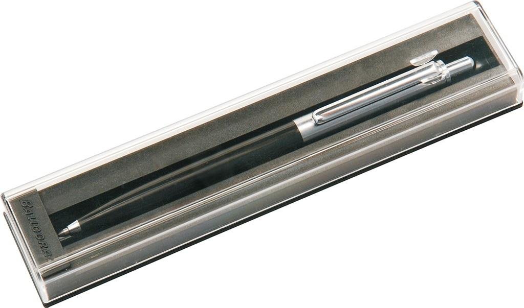 Długopis w plastikowo-metalowej obudowie, trwały mechanizm włączający, wymienne wkłady SCHMIDT FINE 0,7 mm, tusz czarny. Plastikowe etui do każdego długopisu. Dostępne kolory obudowy: czarny, niebieski, bordowy.Towar wysyłany losowo. prečítať celé