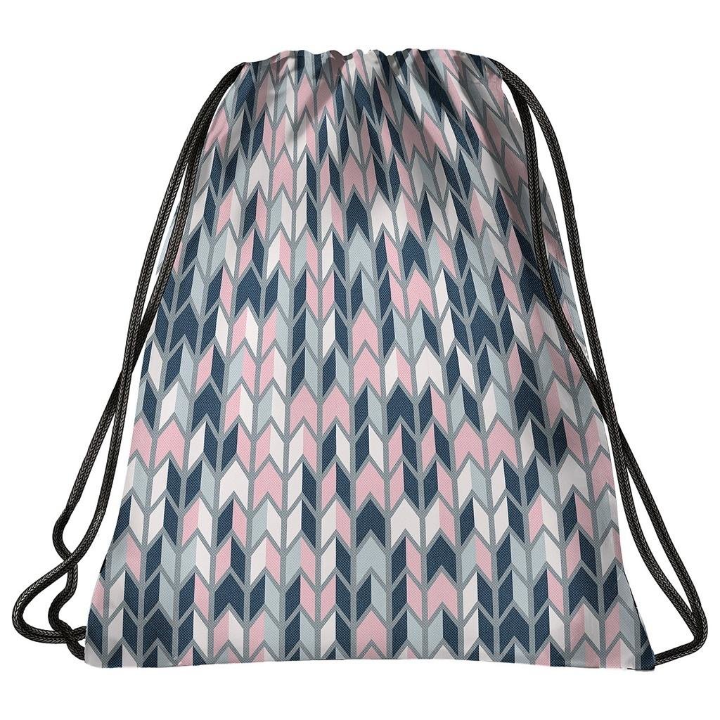 Worek na obuwie BackUP model A 11 w niezwykle elegancki, geometryczny wzor w stonowanych, pastelowych odcieniach szarosci, bieli i różu.Worek na obuwie, idealny na szkolne treningi i na basen. Posiada podwójne boczne sznurki, które umożliwiają noszenie worka w rękach, na ramieniu czy na plecach.