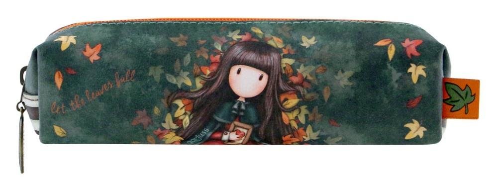 Piórnik - Gorjuss - Autumn Leaves. Piórnik ozdobiony wizerunkiem dziewczynki Gorjuss na tle jesiennych liści. Zmieszczą się w nim zarówno ołówki i długopisy, kosmetyki czy inne drobiazgi. Suwak ozdobiony medalionem w stylu antycznego mosiądzu. Wykonany ze szczególną dbałością. Wewnątrz posiada ciekawy wzór w stylowe paski. Wspaniały prezent, funkcjonalny dodatek do każdego tornistra, plecaka czy biurka.