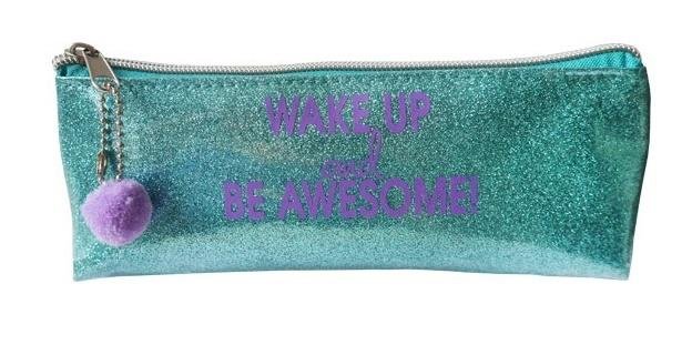 Piórnik zielony brokatowy z pomponem