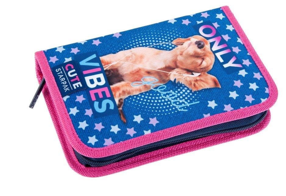 W pełni wyposażony piórnik z 2 skrzydełkami i elastycznymi uchwytami na przybory szkolne zapinany na mocny zamek. W zestawie kredki ołówkowe, flamastry, linijka, gumka, temperówka, długopis, ołówek, plan lekcji i tabliczka mnożenia łącznie ponad 20 elementów. Cały niezbędny komplet w jednym, dzięki czemu oszczędzimy czas i odpowiednio wyposażymy dziecko. Wymiary: 13,5 x 20,5 x 4 cm