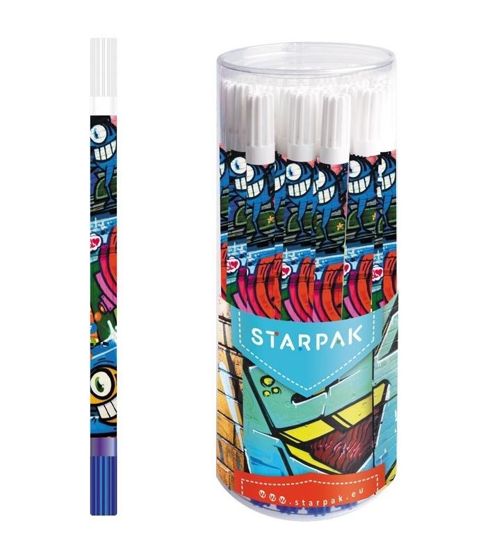 Opakowanie zbiorcze 30szt.Dwustronny wymazywacz w pisaku z kolekcji Starpak. Korektor do piór z jedną końcówką wymazującą, oznaczoną białą zakrętką - skutecznie usuwającą błędy oraz drugą końcówką korygującą, oznaczoną niebieską zakrętką - pozwala na poprawę błędów. Produkt pakowany w tubę po 30...