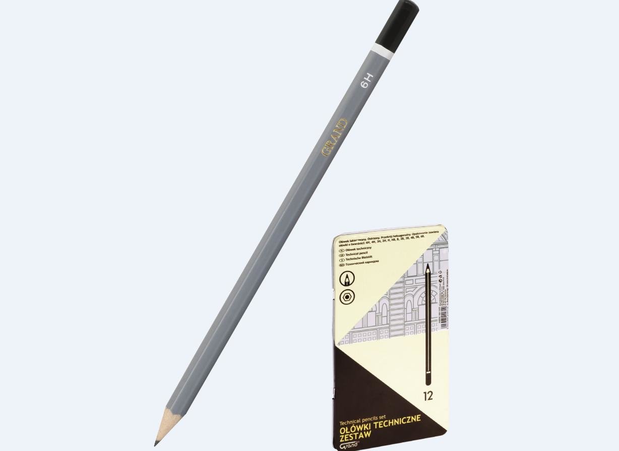 Ołówki techniczne 12 szt - metalowe pudełko GRAND