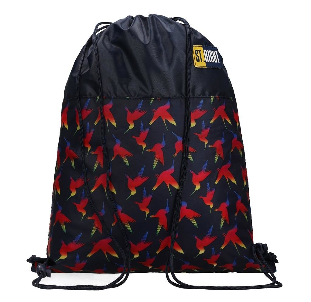 Worek wykonany z wysokiej jakości materiału nieprzemakalnego. Oryginalny i lubiany wzór w tęczowe kolibry na ciemnym tle z pewnością przyciąga wzrok. Worek jest zaciągany na wygodne sznureczki. Możliwość noszenia worka na ramieniu lub na plecach. Dopasowany do plecaków tej samej serii,