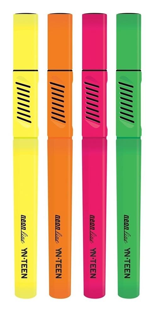 Piękne, neonowe zakreślacze w etui ze ściętą końcówką znacznie ułatwiającą użytkowanie. Idealne do podkreślania oraz kolorowaniu tekstu na papierze, kserokopii oraz papierze termicznym (fax). Zakreślacze mają trójkątny kształt. Opakowanie zawiera 4 zakreślacze: żółty, zielony, różowy, pomarańczowy.