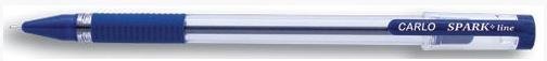 Wysokiej klasy długopis z niklowo-srebrną końcówką 0,7mm zakończoną kulką wolframową, tusz niebieski o niskiej zawartości wiskozy czyni pisanie wyjątkowo lekkim, wygodny grip ułatwia trzymanie w dłoni, indywidualny kod kreskowy, firmowe pudełko 12 sztuk, seria: SparkLine, wyprodukowano w Indiach.