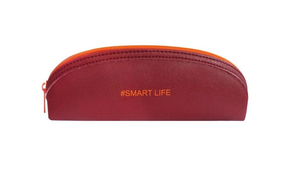 Piórnik saszetka.Zamykany na zamek.Kolor czerwony z pomarańczowym zamkiem i napisem. prečítať celé