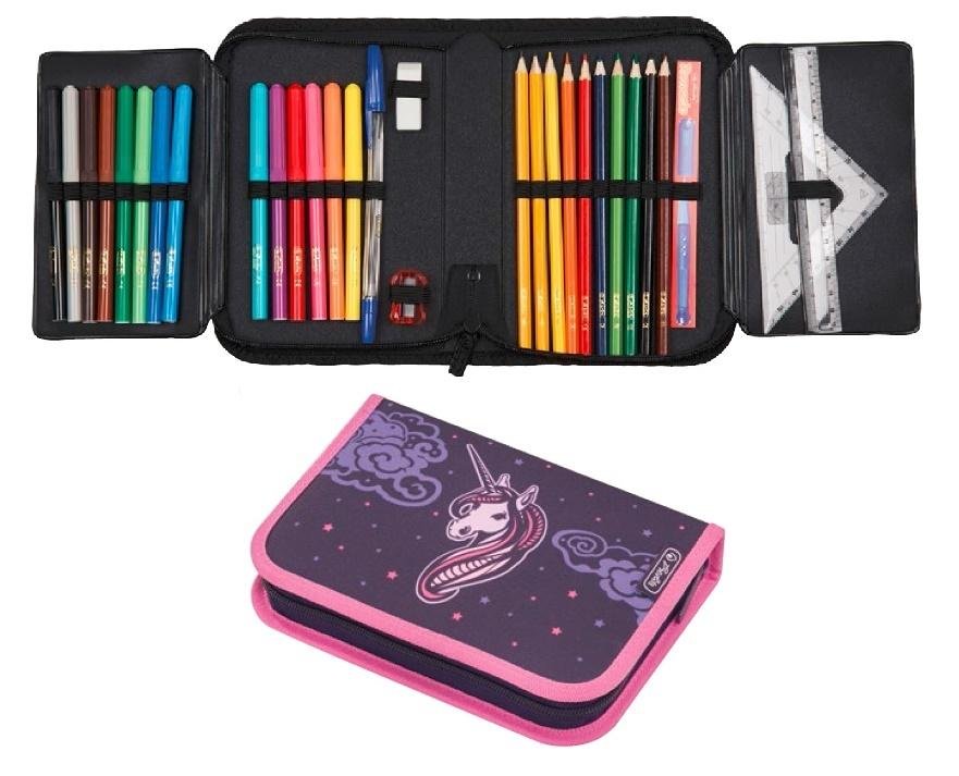 Piórnik wykonany jest z poliestru, zapinany na zamek błyskawiczny. Wyposażony w kredki, ołówek, temperówkę, gumkę oraz linijkę. 2 wkłady, zapinany na zamek błyskawiczny, 31 części. szerokość: 14 cm, wysokość: 20,3 cm, grubość: 3,5 cm prečítať celé