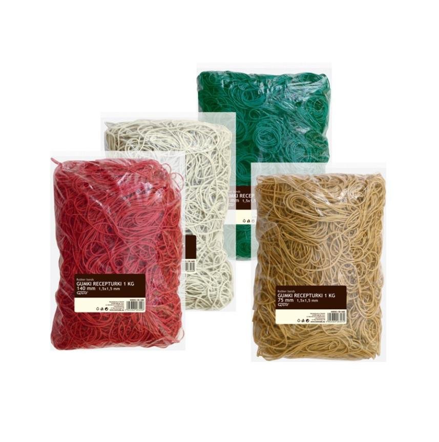 Elastyczne gumki dostępne w 4 kolorach: naturalnym, czerwonym, zielonym oraz białym. Pakowane w woreczki.Rozmiar: 1,5 x 1,5mm.Średnica: 40mm.Długość po złożeniu: 7cm.Opakowanie: 1kg. prečítať celé