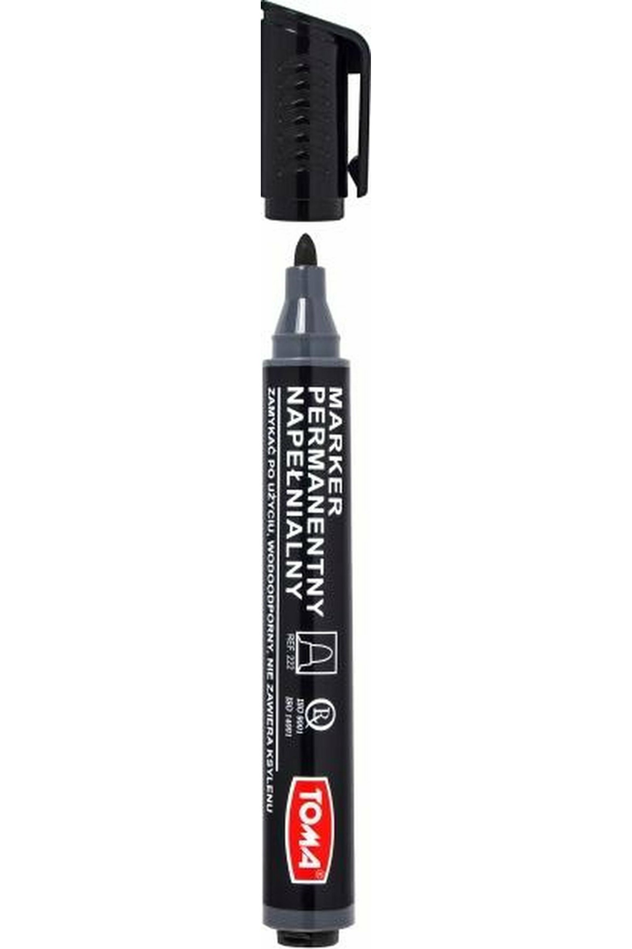 Marker permanentny napełnialny z tuszem wodoodpornym, nie zawierający ksylenu i toluenu. Do pisania po wszystkich powierzchniach. Certyfikaty ISO 9001, ISO 14001. Japońska technologia i produkcja. Bardzo łatwe otwieranie. Do ponownego napełnienia wystarczy kilka kropli tuszu. Szerokość lini pisania 1,5 mm, długość lini pisania 550 m.