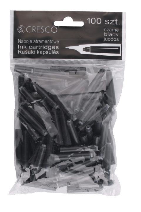 Naboje atramentowe marki CRESCO wyposażone są w najwyższej jakości atrament w kolorze czarnym.Zapewniając najwyższy standard pisania czarny szybkoschnący atrament rekomendowany dla osób piszących lewą ręką formuła poprawiającą jakość pisania piór kulkowych zasilanych standardowymi nabojami...