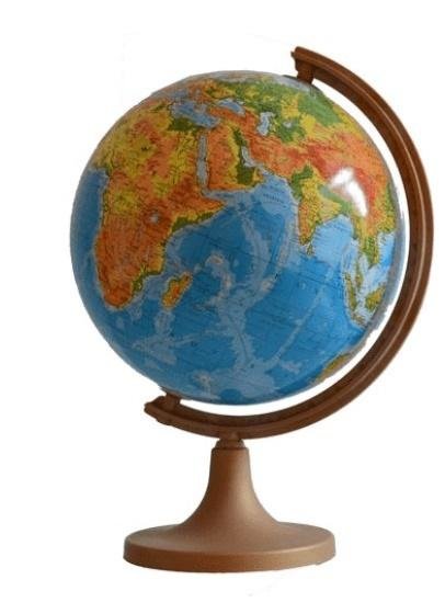 Globus 320 mm mapa fizyczna, plastikowa niska stopka, cięciwa plastikowa. prečítať celé