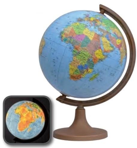 Globus 320 mm podświetlany, mapa polityczno-fizyczna 2w1, plastikowa niska stopka, cięciwa plastikowa. Jest to globus zawierający mapę polityczną Świata, natomiast po podświetleniu pojawia się mapa fizyczna. Więc na jednym globusie mamy 2 mapy. Świetnie nadaje się do przyswajania...