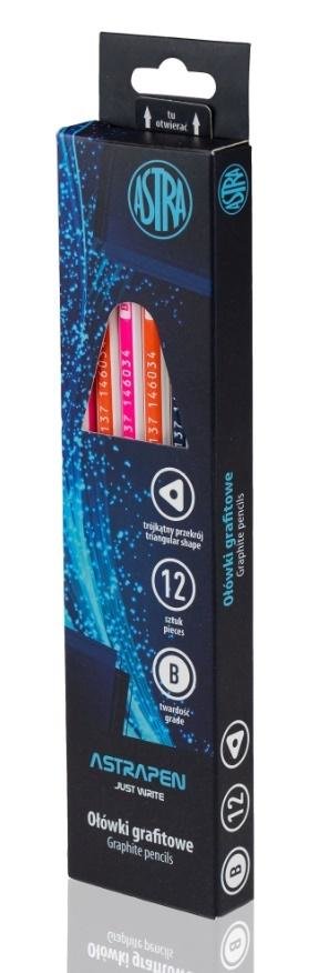 Ołówek grafitowy z gumką B (12szt) ASTRA