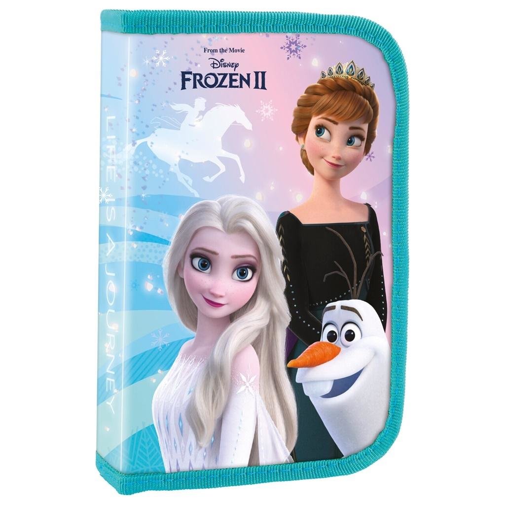 "Piórnik jednokomorowy z wyposażeniem, zapinany na zamek błyskawiczny zakończony ozdobnym suwakiem. Wewnątrz znajdują się dwie dodatkowe klapki. Piórnik posiada nadruk licencyjny nie tylko na zewnątrz, ale także na wybranych elementach wyposażenia . W skład wyposażenia wchodzi: 10 kredek...