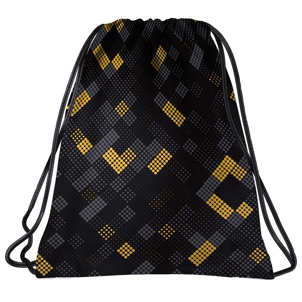 Czarny worek na obuwie w żółte i szare punkciki, które układają się w geometryczne kształty, tworzą w całości niesamowity motyw! Kontrastowy, żółty kolor dodaje charakteru. Worek jest bardzo stonowany, a jednocześnie ma w sobie coś intrygującego. Dodatkowo nie trzeba się martwić, że będzie widać...