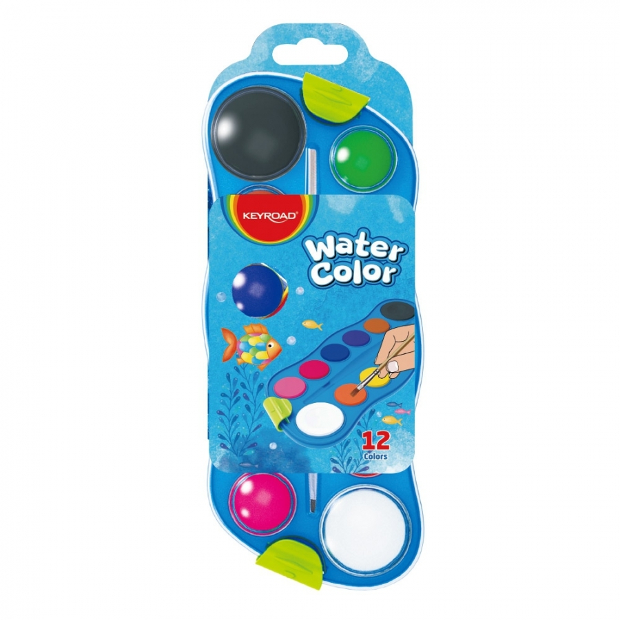 Vodové barvy KEYROAD s malířskou paletou, 12 barev