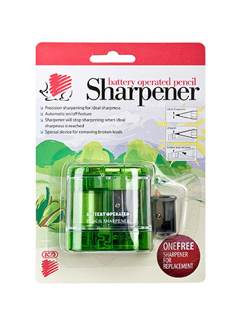 Elektrické ořezávátko s pohonem na baterie pro běžné tenké tužky (pastelky) - průměr otvoru 8mm. Ořezávátko nelze napájet adaptérem. Součástí balení je náhradní nožík. prečítať celé