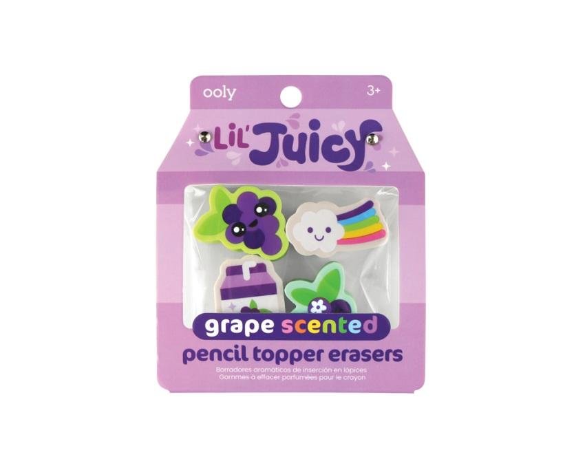 Dodaj trochę słodyczy swoim ołówkom dzięki pachnącym gumkom na ołówki Lil Juicy.Daj się oczarować smakowitemu zapachowi winogron! Mniam!Zestaw pachnących, nakładanych na ołówek gumeczek do ścierania zapakowany jest w słodkie pudełeczko przypominające owocowy soczek. W środku znajdują się trzy...