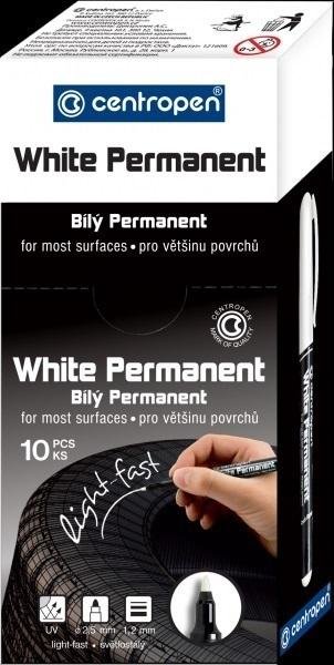Opakowanie zbiorcze (10 szt)Zostaw trwały ślad!Jedyny taki specjalny biały marker permanentny przeznaczony do większości ciemnych powierzchni takich jak: film, folia, metal, plastik, szkło, porcelana, guma, papier, skóra.Mocno kryjący, fantastyczny zarówno do prac domowych jaki profesjonalnego...