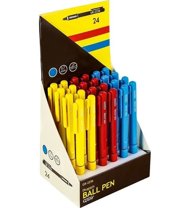 Opakowanie zbiorcze 24 sztuki.Długopis GRAND GR-2256:automatyczny z wymiennym wkładem,ergonomiczna obudowa z elementami antypoślizgowymi,długość pisania: 650 m,grubość linii 0,7 mm,niebieski kolor tuszu,opakowanie: 24 szt. prečítať celé