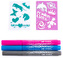 12 szablonów pomoże w tworzeniu ciekawych wzorów. Metaliczne markery w kolorach: różowym, niebieskim oraz szarym. Idealnie sprawdzi się jako upominek. Do zmycia tatuażu używać płynu do demakijażu.