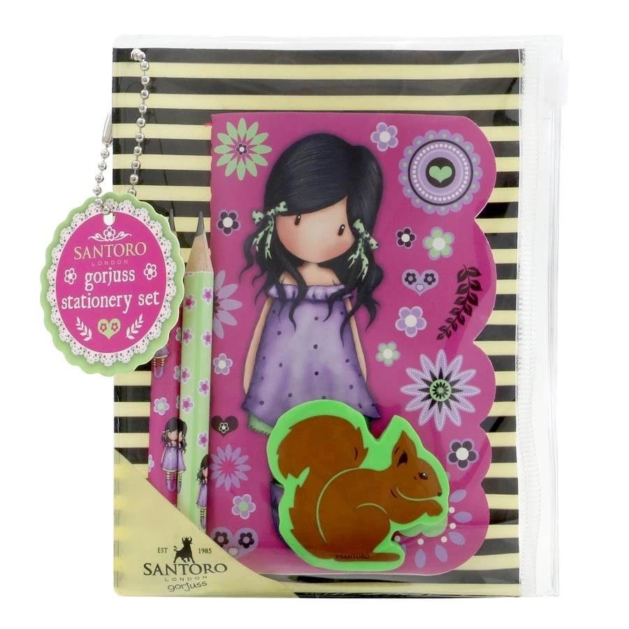 Zestaw składa się z notesu z gładkimi, różowymi kartkami, 2 mini ołówków oraz gumki w kształcie wiewiórki.Przezroczysta plastikowa saszetka zasuwana na suwak może służyć jako malutka kosmetyczkaPrzepiękny zestaw idealny na prezentPrzyda się w zarówno w plecaku jak i w torebce