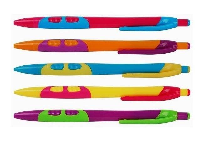 Plastikowy długopis, automatyczny, ergonomiczna obudowa z uchwytem antypoślizgowym, wymienny wkład F-411, niebieski kolor tuszu, grubość linii 0,7 mm, miks kolorów w opakowaniu zbiorczym. prečítať celé