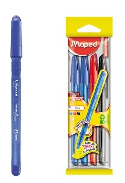 Długopis Ice Fine ekologiczny i ekonomiczny. Ergonomiczny, trójkątny uchwyt. Korpus i skuwka w kolorze tuszu z matowymi i błyszczącymi wzorami. Wentylowana skuwka. Tusz o niskiej lepkości gwarantujący płynne pisanie. Długość pisania 1500 m. W 80% wykonany z surowców wtórnych. Kod kreskowy na każdym produkcie. Grubość linii F, średnica końcówki 0,7mm. Flowpack 4 szt: 1 szt czarny, 1 szt czerwony, 2 szt. niebieski. JS 1 szt.
