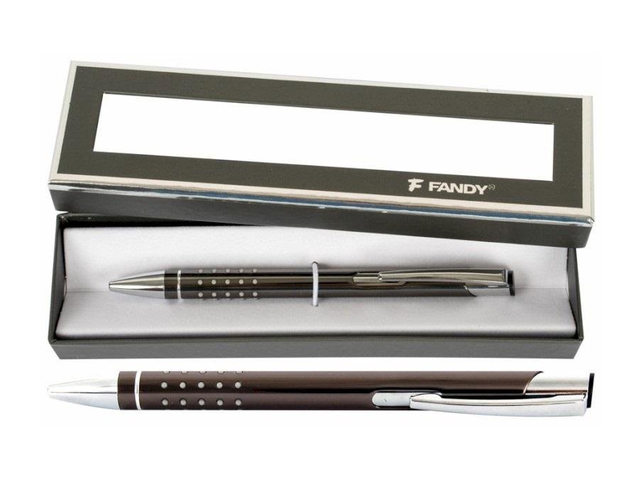 Metalowy długopis automatyczny, wymienny wkład F-Parker, uchwyt z gumowymi wypustkami dla wygodnego trzymania, niebieski kolor tuszu, grubość linii 0,7 mm, pudełko upominkowePSAPO prečítať celé